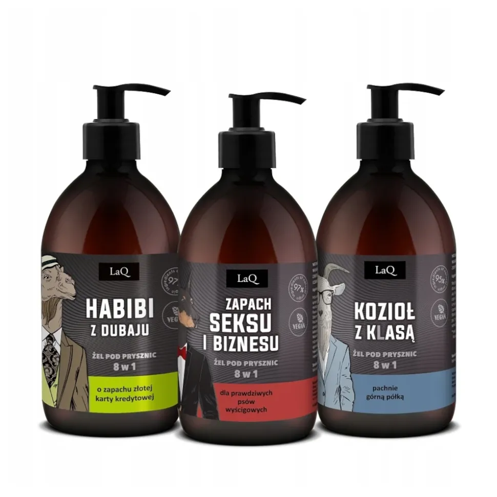 Jeśli jeszcze nie znasz naszych linii zapachowych, to wiedz, że w Zestawie Ich Troje pierwsze skrzypce gra HABIBI o zapachu złotej karty kredytowej, wtóruje mu SEKS I BIZNES o zapachu seksu i biznesu, a górną półkę zamyka KOZIOŁ Z KLASĄ, który nie beczy, on negocjuje. Ich zapach? Górna półka, zero kompromisów.