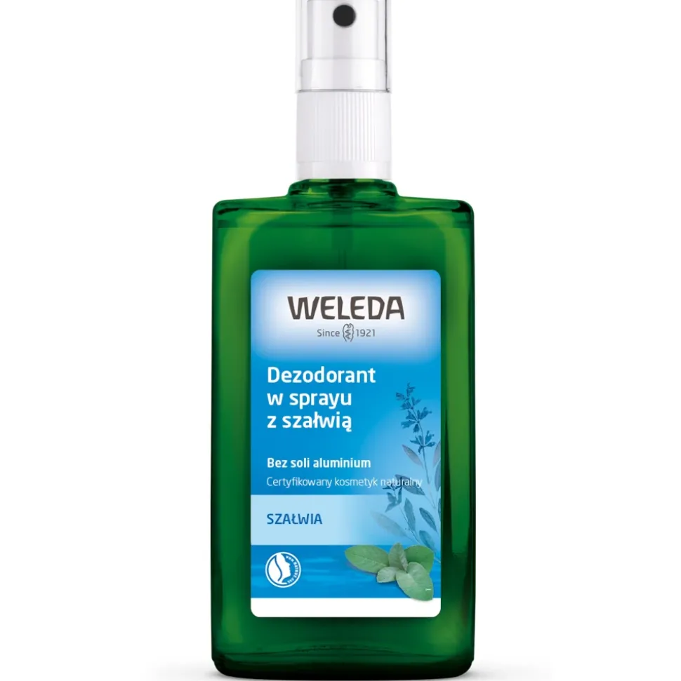 Tam, gdzie zwykłe dezodoranty zatykają pory, Dezodorant w sprayu z szałwią Weleda, z naturalnymi olejkami eterycznymi, hamuje nieprzyjemny zapach potu, równocześnie pozwalając jej oddychać. Zamknięty w butelce ze szkła nadającego się do przetworzenia, ze sprayem z pompce, bez aerozolu, bez soli aluminium lub innych mineralnych antyperspirantów- to nasza oferta naturalnej świeżości.