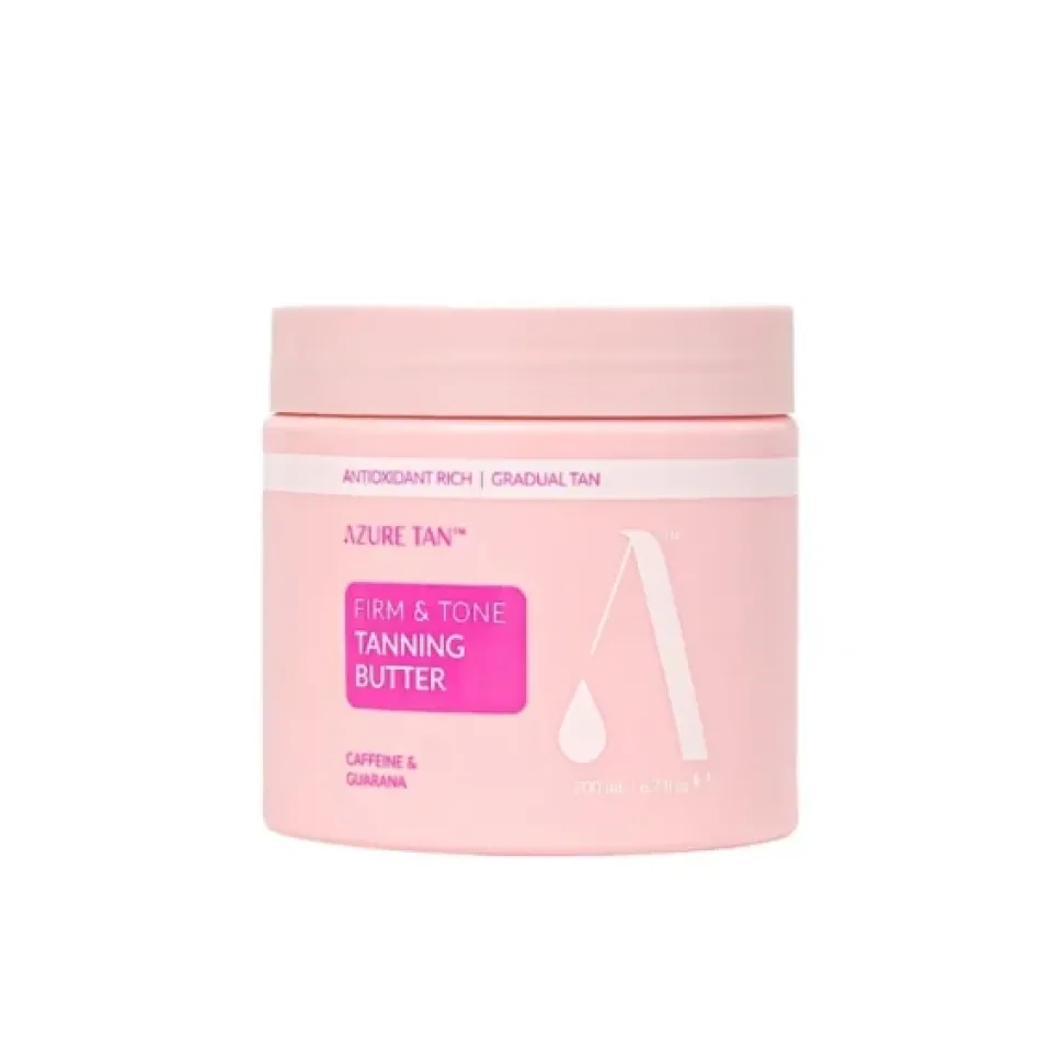Stopniowo opalające masło do ciała Azure Tan Firm & Tone zapewni skórze energetyzujący kofeinowy lifting i promienną, zdrową opaleniznę. Zawarte w maśle składniki aktywne zapewnią skórze odpowiednie nawilżenie, odżywienie i wesprą w walce z pierwszymi oznakami starzenia.