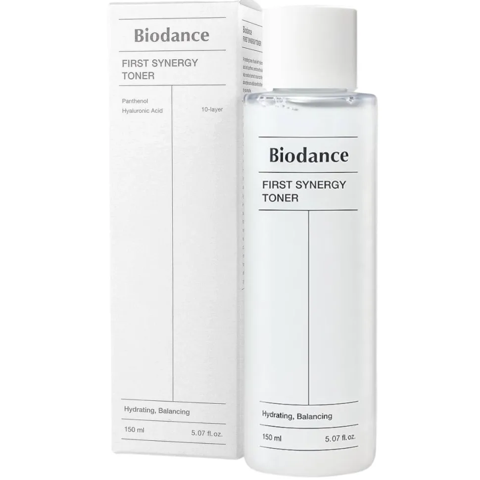 BIODANCE First Synergy Toner to zaawansowany tonik, który działa wielokierunkowo na skórę, dostarczając jej intensywnego nawilżenia, odżywienia i regeneracji. Zawiera unikalne połączenie kwasu hialuronowego w różnych formach oraz ekstraktów roślinnych, które wspomagają odbudowę bariery ochronnej skóry. Regularne stosowanie toniku pomaga w utrzymaniu optymalnego poziomu nawilżenia, poprawia elastyczność oraz przywraca skórze zdrowy i promienny wygląd. Nawilża, regeneruje oraz wzmacnia barierę ochronną skóry.