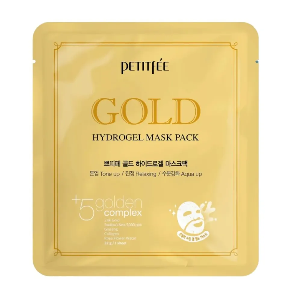 Petitfee Gold Hydrogel Mask Pack to hydrożelowa maska do twarzy, która dzięki zawartości prawdziwego złota, kolagenu i odżywczych ekstraktów roślinnych intensywnie nawilża, ujędrnia i rozświetla skórę.