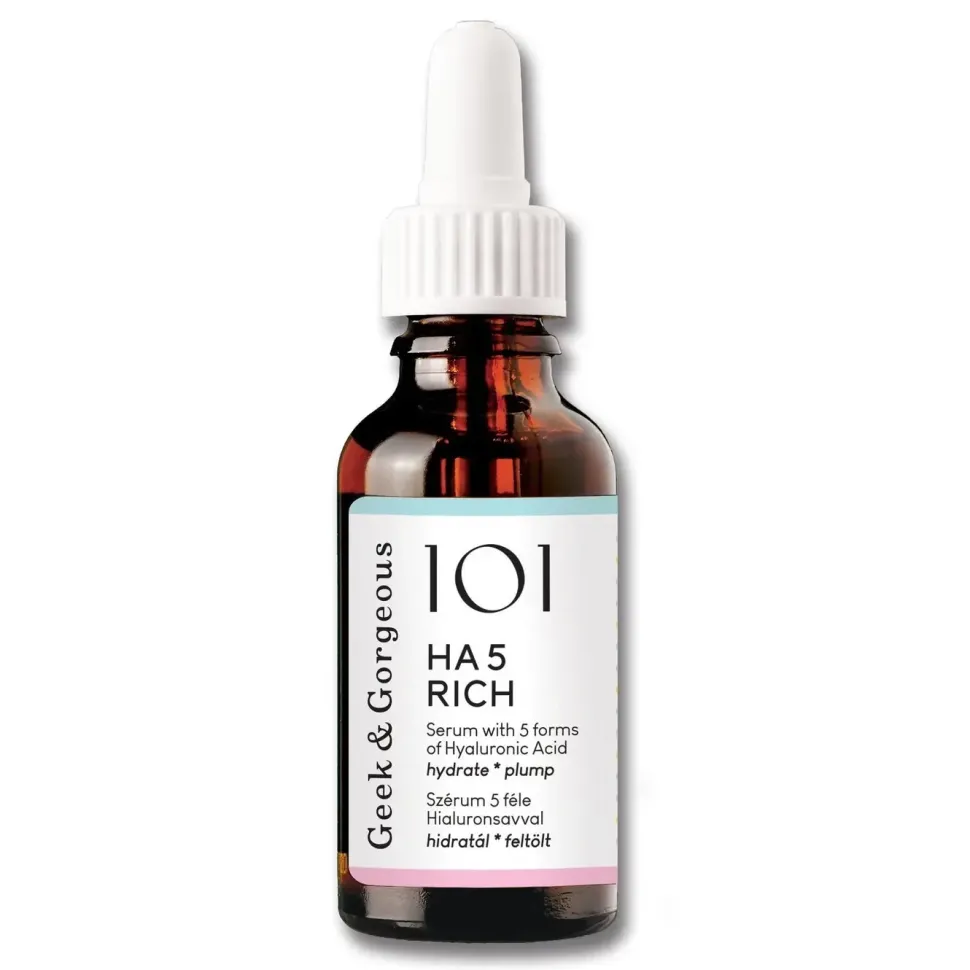 5 form kwasu hialuronowego o różnej masie cząsteczkowej i strukturze łączy siły w tej lekkiej i szybko wchłaniającej się formule, aby nawilżać, zmiękczać i wypełniać skórę.