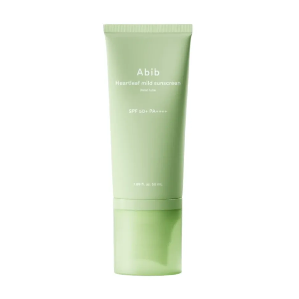 Abib Heartleaf Mild Sunscreen SPF 50 zawiera ekstrakt z houttuynia cordata oraz kompleks składników kojących i nawilżających, które wspierają barierę ochronną skóry oraz redukują podrażnienia.