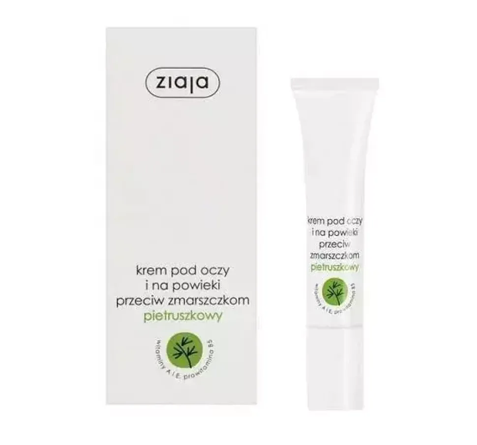 Przeciwzmarszczkowy krem pod oczy i na powieki od marki Ziaja. Na bazie ekstraktu z pietruszki. Ujędrnia, wygładza i zmniejsza widoczność oznak zmęczenia. Przeznaczony do codziennej pielęgnacji delikatnej skóry wokół oczu w każdym wieku. Delikatny, nieperfumowany krem o aktywnej formule odżywczej.