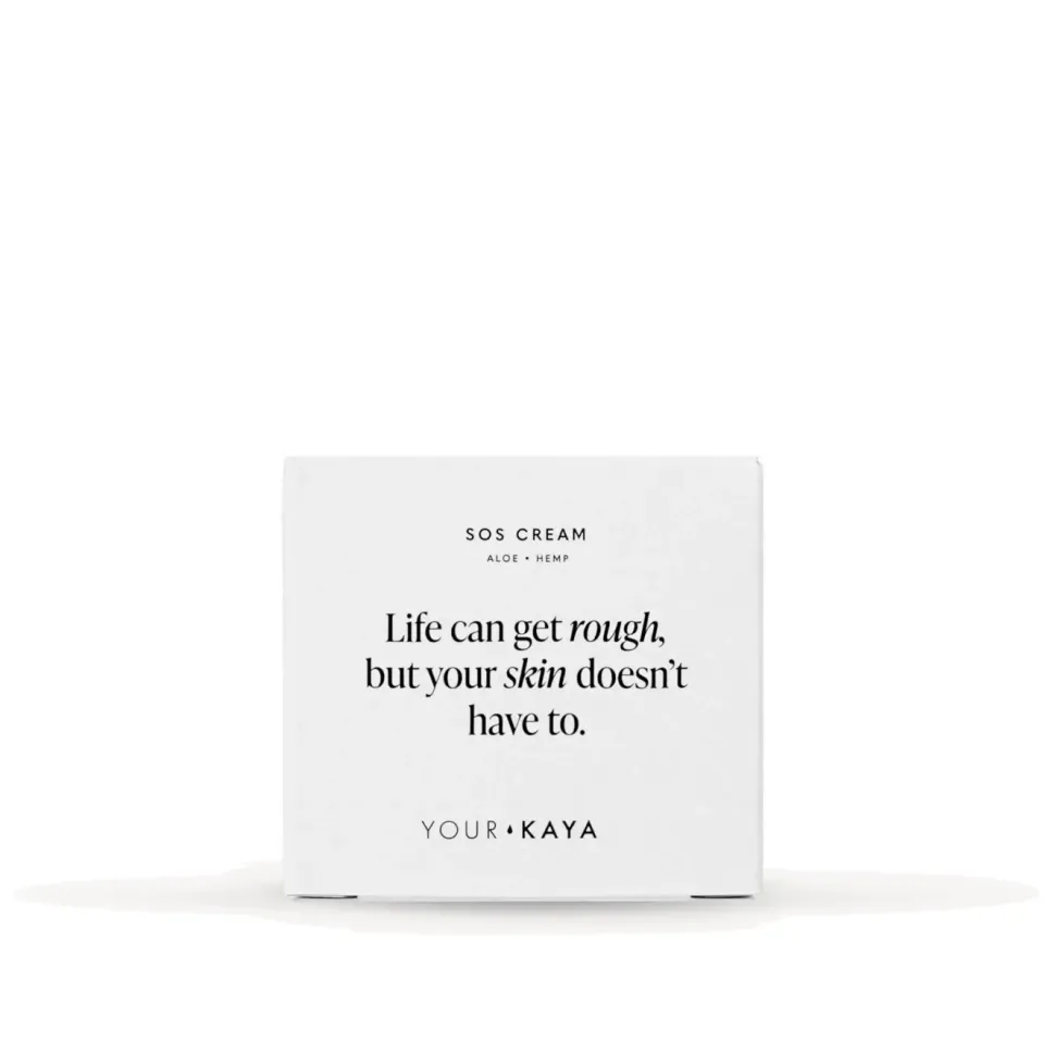 Wegański, natłuszczający krem SOS Your KAYA jest idealny dla skóry wrażliwej i atopowej. To opatrunek w słoiku, który ukoi i dogłębnie nawilży spierzchnięte usta, szorstkie łokcie, spękane pięty i każde miejsce, które woła o pomoc. Dzięki zawartości aloesu, olejów z konopi, słodkich migdałów i jojoba, tworzy odżywczą warstwę ochronną i łagodzi uporczywą suchość. Przetestowana na skórze wrażliwej, skuteczna, łagodna, treściwa i, jak to mamy w zwyczaju, naturalna (zawiera aż 99,9% składników pochodzenia naturalnego!) formuła – to ją właśnie skrywa ten niepozorny słoiczek.