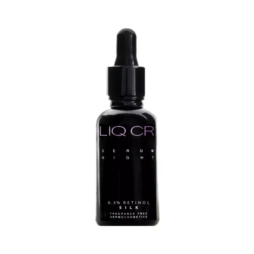 Serum LIQ CR koryguje niedoskonałości i pomaga zredukować bruzdy, zmarszczki oraz plamy starcze. Odpowiednie stężenie czystego Retinolu (0.3%) nie tylko ogranicza i spowalnia proces starzenia się skóry ale również, poprzez intensywny wpływ na syntezę kolagenu, poprawia widocznie jej elastyczność i napięcie. Obecność kwasu laktobionowego i witaminy E zapewnia optymalne funkcjonowanie bariery naskórkowej w trakcie kuracji Retinolem.