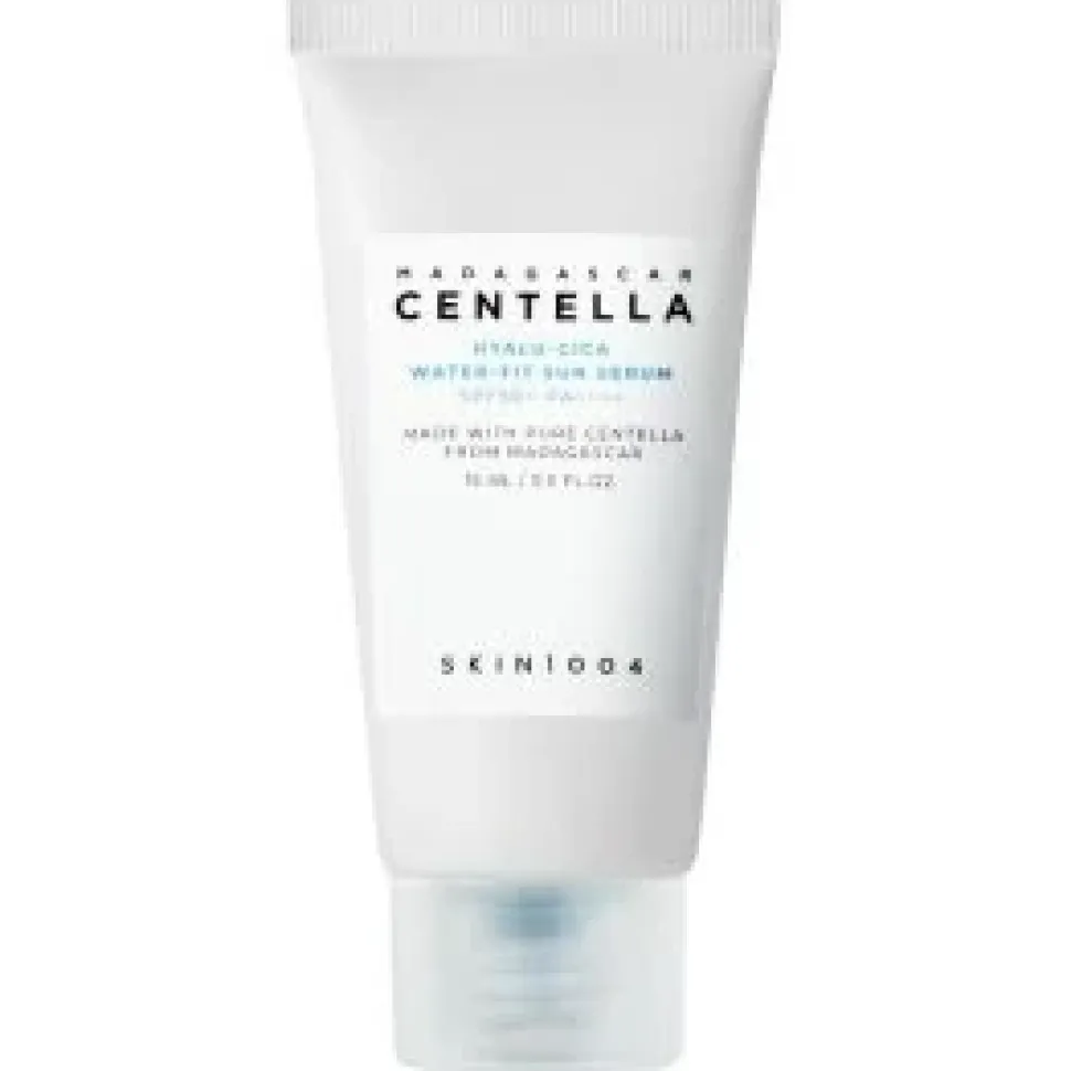 SKIN1004 MADAGASCAR CENTELLA Hyalu-Cica WATER-FIT Sun serum to lekki, nawilżający krem przeciwsłoneczny o wysokim współczynniku ochrony SPF 50+ PA++++. Został opracowany, by zapewnić kompleksową ochronę przed szkodliwym działaniem promieniowania UV, jednocześnie pielęgnując skórę dzięki bogatemu składowi.