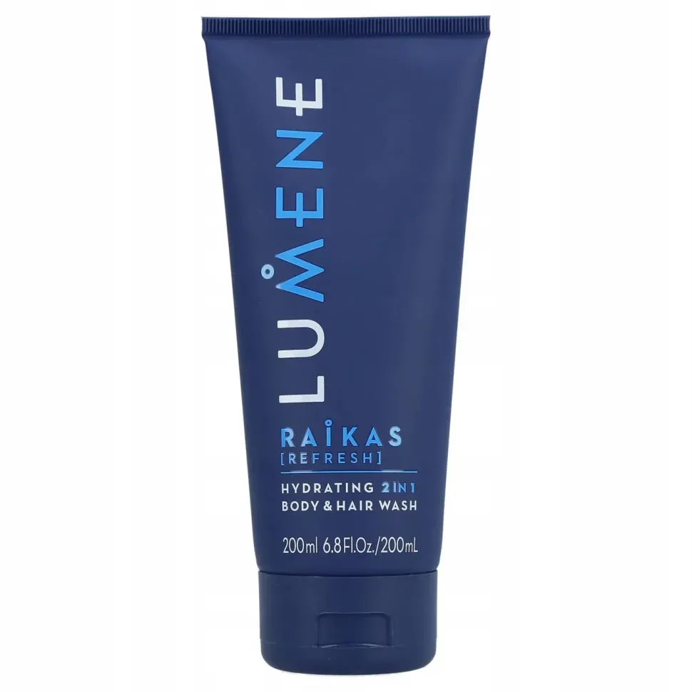 Żel pod prysznic i szampon 2 w 1 Lumene Men Raikas [Refresh] szybko i skutecznie myje zarówno skórę całego ciała, jak i włosy.