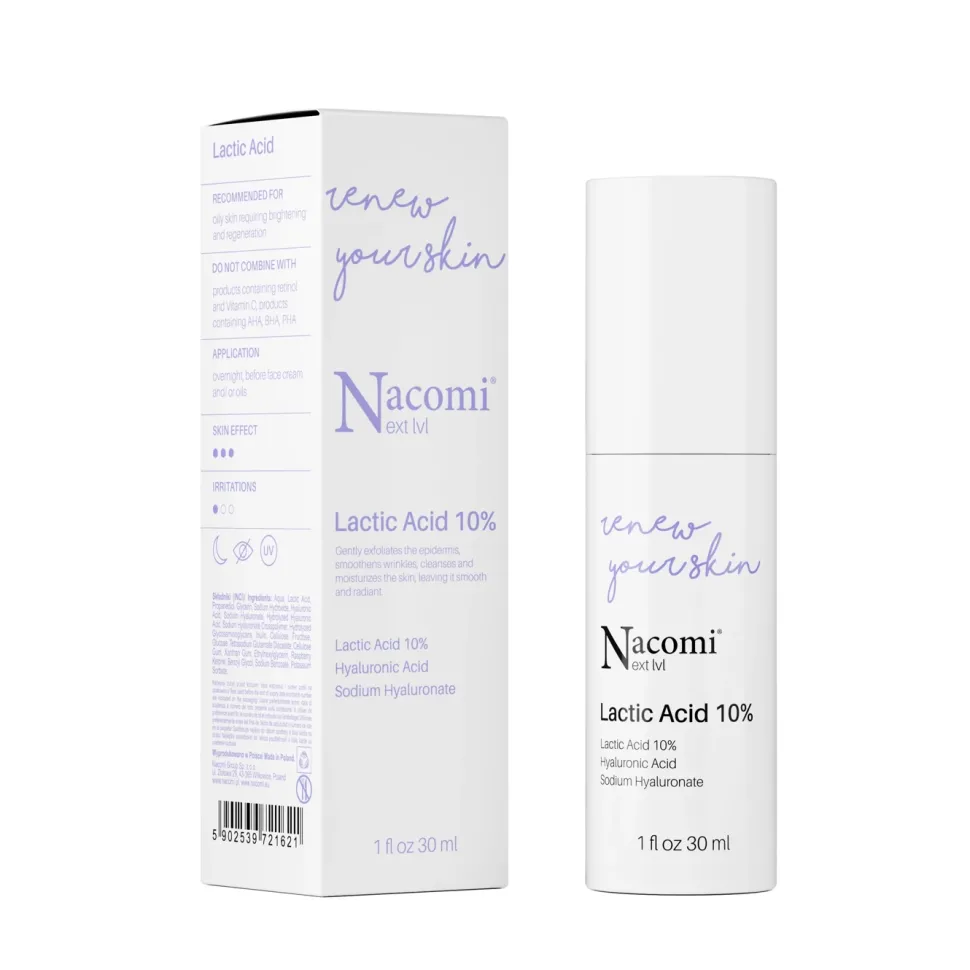 Kwas mlekowy, składnik naturalnego czynnika nawilżającego skórę, dzięki swojej dużej cząsteczce, działa głównie na poziomie naskórka, co sprawia, że jest łagodny i minimalizuje ryzyko podrażnień. Skutecznie nawilża skórę, pobudza produkcję ceramidów, wygładza drobne zmarszczki oraz delikatnie złuszcza naskórek, rozjaśniając przebarwienia. Jego właściwości oraz zdolność do odblokowywania porów czynią go wszechstronnym narzędziem w walce z wieloma problemami skórnymi.