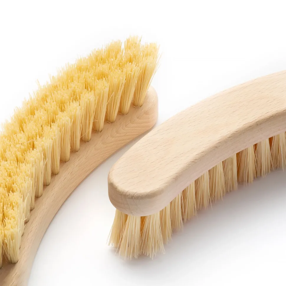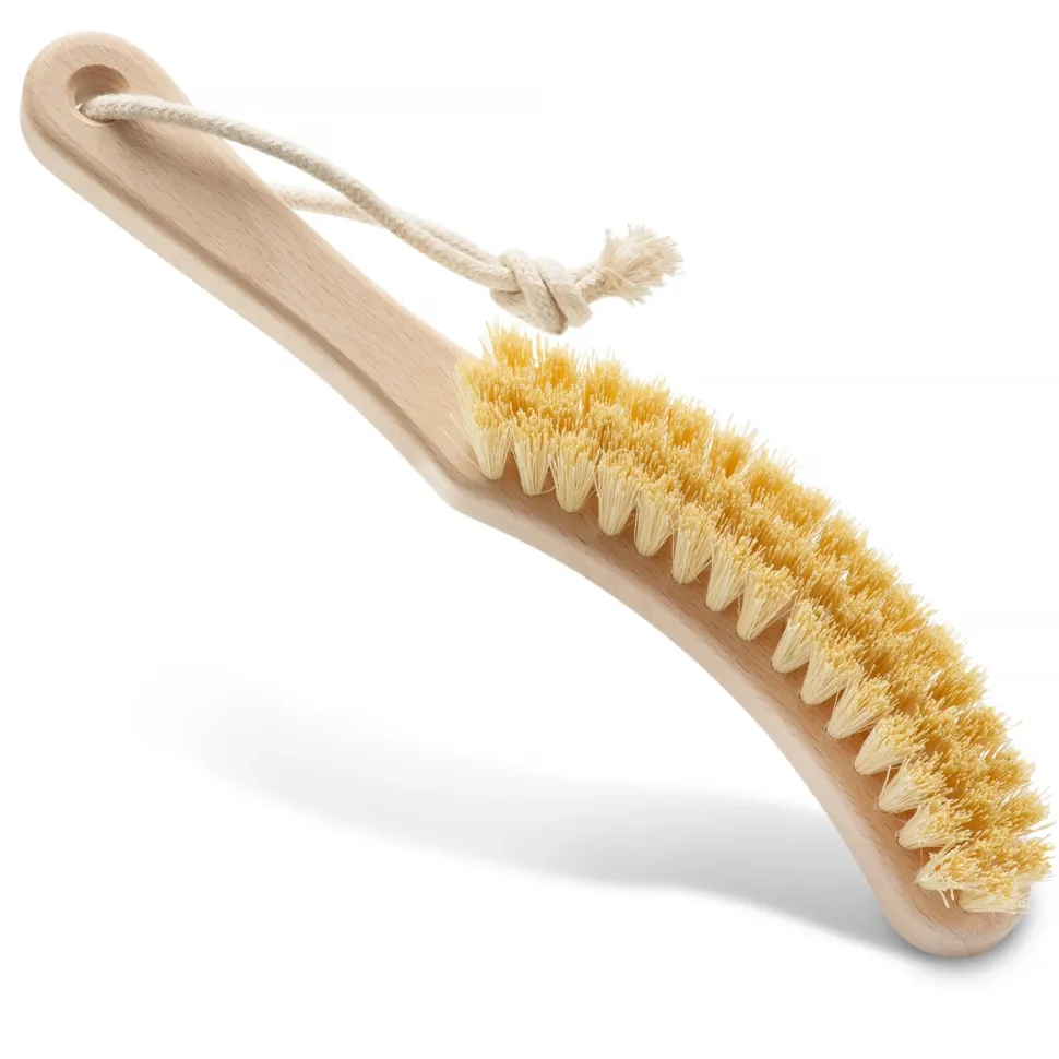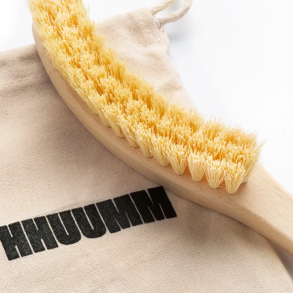 Szczotka do masażu ciała na sucho. Oprawa szczotki zrobiona jest z litego drewna bukowego gęsto nabita włóknem Tampico, pozyskiwanym z kaktusa agawy.