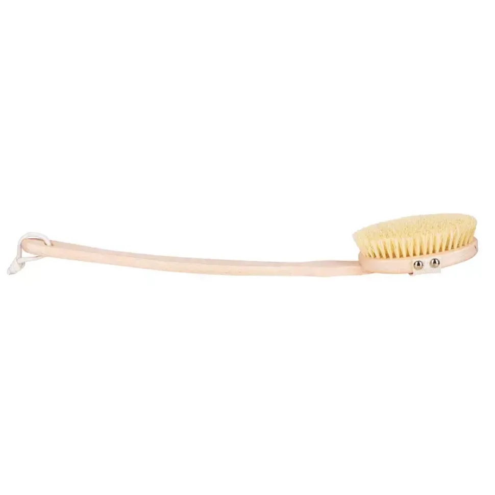 Szczotka do masażu ciała na sucho z odpinanym kijem, który ułatwi masaż pleców i trudno dostępnych miejsc na ciele.Wykonana metodą rzemieślniczą z drewna bukowego. Ręcznie gęsto nabita naturalnym włóknem kaktusa agawy. Bawełniany uchwyt na dłoń ułatwia wykonywanie precyzyjnych ruchów.