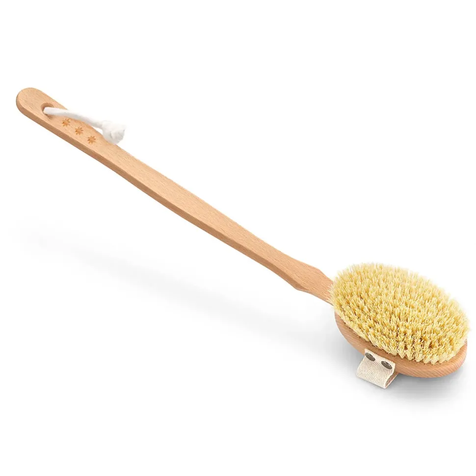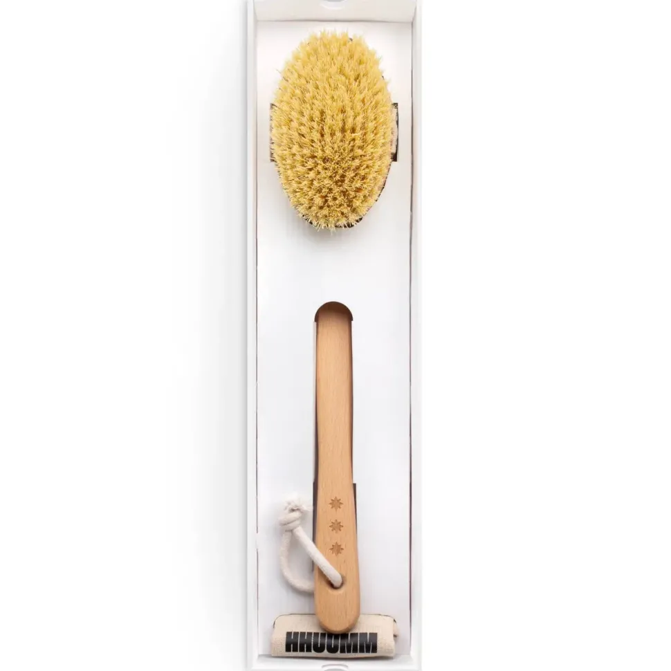 Szczotka do masażu ciała na sucho z odpinanym kijem, który ułatwi masaż pleców i trudno dostępnych miejsc na ciele.Wykonana metodą rzemieślniczą z naturalnego, olejowanego drewna bukowego.Ręcznie gęsto nabita naturalnym włóknem kaktusa agawy. Bawełniany uchwyt na dłoń ułatwia wykonywanie precyzyjnych ruchów.