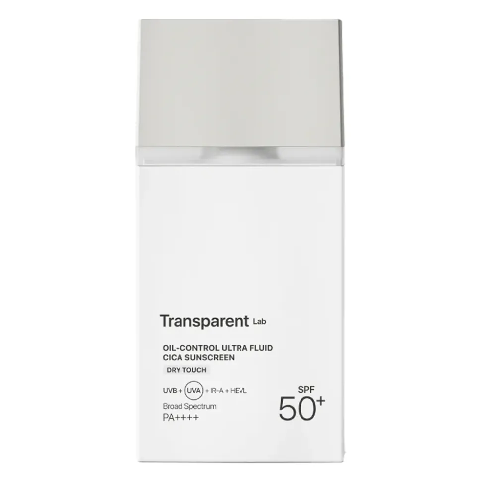 Transparent Lab – Oil Control Ultra Fluid Cica Sunscreen – krem z filtrami mieszanymi, który zapewnia ochronę przeciwsłoneczną na poziomie SPF50+.