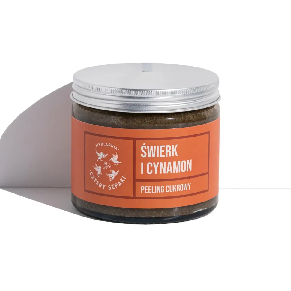 Świerk raczy tutaj czymś żywicznym, balsamicznym, iglastym i świeżym, cynamon dodaje nutki pikanterii, ciepła oraz pyszności, z kolei goździki to po prostu święta, korzenność, ale także zmysłowość. Jednym słowem: bajka. I żeby nie było, że on tylko pachnie. Olejki eteryczne oprócz swoich właściwości zapachowych, niosą również te pielęgnacyjne i zdrowotne. Olejek świerkowy działa odświeżająco, pobudzająco i energetyzująco, cynamonowy z kolei relaksująco, uspokajająco i… kusząco. Bo to silny afrodyzjak jest! Goździk nie pozostał zresztą w tyle i jako antyoksydant oferuje hamowanie procesu starzenia skóry, a dodatkowo odżywia ją i rozgrzewa. W środku wylądowała jeszcze żółta glinka, niosąc za sobą pakiet oczyszczenia (świetnie radzi sobie ze zwężaniem rozszerzonych porów!). Właściwości peelingujące produkt zawdzięcza zarówno drobinkom cukru, jak i zmielonym orzechom, które doskonale złuszczają martwy naskórek oraz są naturalnym wrogiem cellulitu. Kosmetyk wystarczy regularnie wmasowywać w skórę, co poprawi jej jędrność, elastyczność, wygładzi strukturę oraz pobudzi krążenie. Taki masaż oprócz walorów zdrowotnych, niesie za sobą moc przyjemności – prawdziwy relaks i regeneracja w zaciszu własnej łazienki.