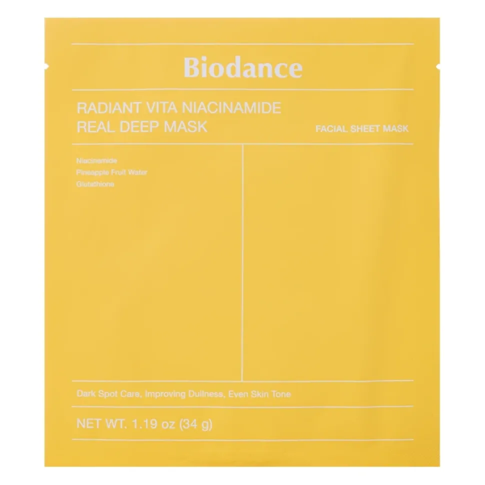 Biodance – Radiant Vita Niacinamide Real Deep Mask – hydrożelowa maseczka do twarzy, która składa się z dwóch części (na dolną i górną partię twarzy).