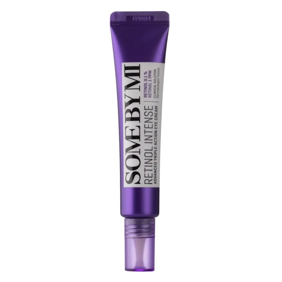 Some By Mi – Retinol Intense Advanced Triple Action Eye Cream – krem pod oczy, który działa na trzech płaszczyznach – wygładza zmarszczki, rozjaśnia cienie oraz przywraca elastyczność i jędrność wiotkiej skórze. Zawiera 0,1% retinol oraz retinal, które działają silnie przeciwzmarszczkowo, ujednolicają koloryt, wygładzają i stymulują komórki do odnowy. Argirelina to peptyd syntetyczny, który stymuluje produkcję kolagenu oraz zapobiega pogłębianiu zmarszczek. Dodatek niacynamidu wzmacnia barierę ochronną skóry, działa antyoksydacyjnie oraz rozjaśniająco.