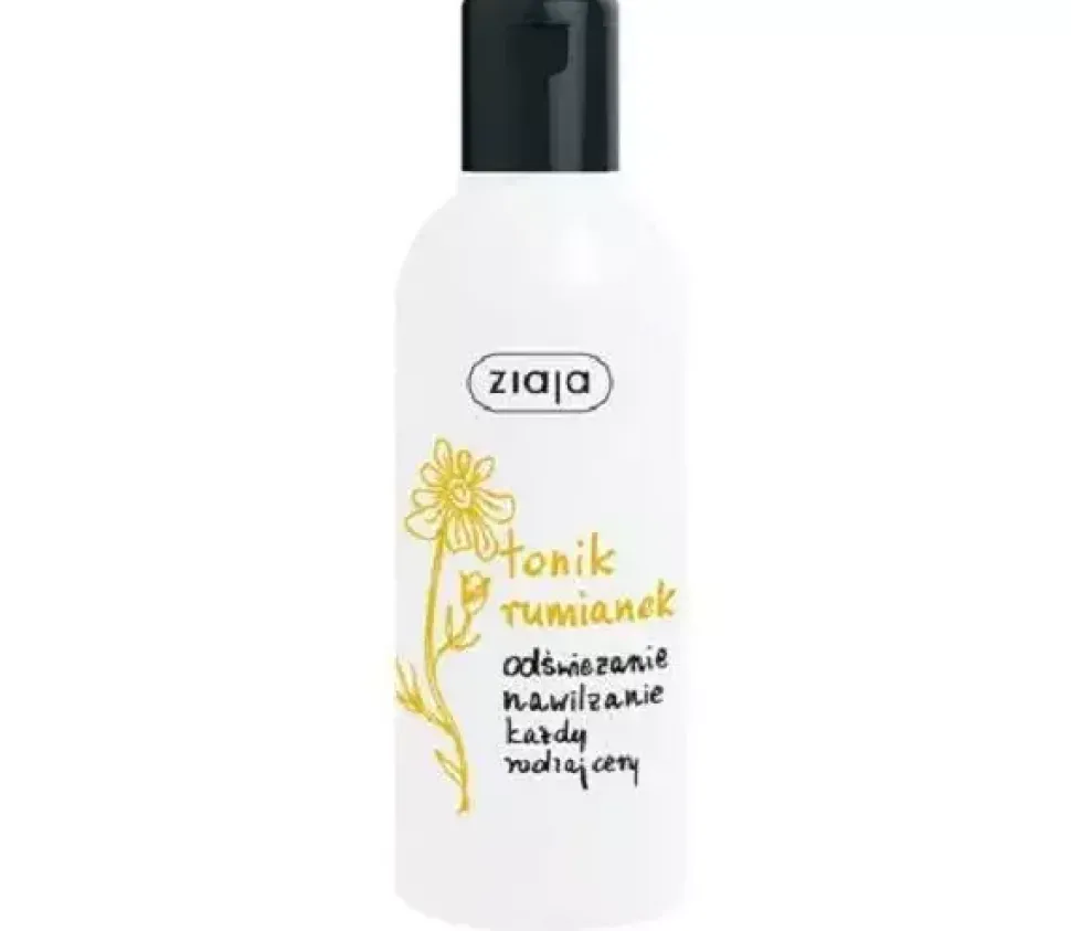 Rumiankowy tonik do mycia twarzy od marki Ziaja. Usuwa zanieczyszczenia i zmniejsza widoczność porów. Przeznaczony do każdego rodzaju cery. Na bazie rumianku.