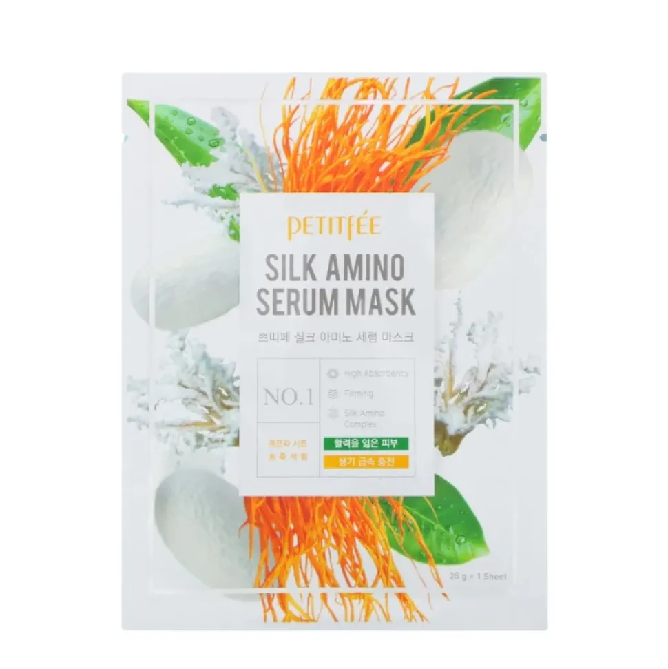 Petitfee Silk Amino Serum Mask to maska w płachcie do twarzy, która intensywnie nawilża i regeneruje skórę. Dzięki zawartości hydrolizowanego jedwabiu i ekstraktów roślinnych, maska przywraca skórze miękkość i elastyczność, pozostawiając ją gładką i promienną.