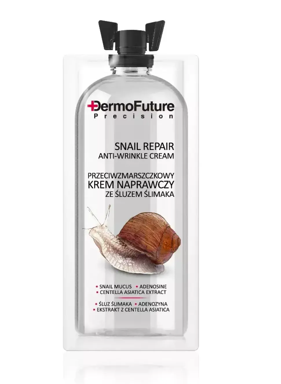 Zawarty w PRZECIWZMARSZCZKOWYM KREMIE NAPRAWCZYM śluz ślimaka natychmiastowo poprawia kondycję skóry. Silnie skoncentrowany śluz ślimaka daje efekt naprawy skóry, przyczynia się do jej odnowienia, przywraca jędrność i elastyczność, zapobiega starzeniu się, zapewniając jej maksymalne nawilżenie. Dodatkowo adenozyna skutecznie unosi owal twarzy, a drobne zmarszczki zostają zredukowane. Cera staje się gładka, promienna i odmłodzona. Zawarty w produkcie ekstrakt z Centella Asiatica działa łagodząco i sprawia, że skóra staje się bardziej matowa. Z dnia na dzień jest gładsza i bardziej nawilżona.