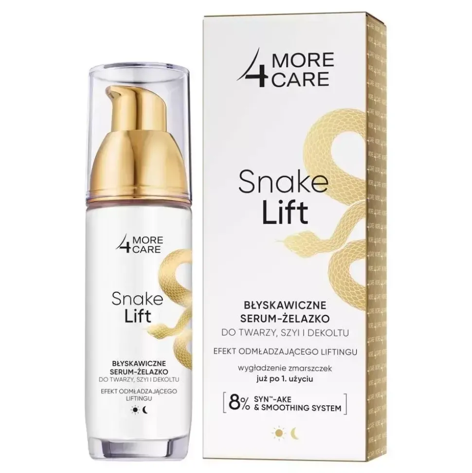 Błyskawiczne serum-żelazko Snake Lift to więcej niż skoncentrowany eliksir przeciwzmarszczkowy. Zaawansowana formuła daje natychmiastowy EFEKT ŻELAZKA NA ZMARSZCZKI JUŻ PO 1. UŻYCIU!