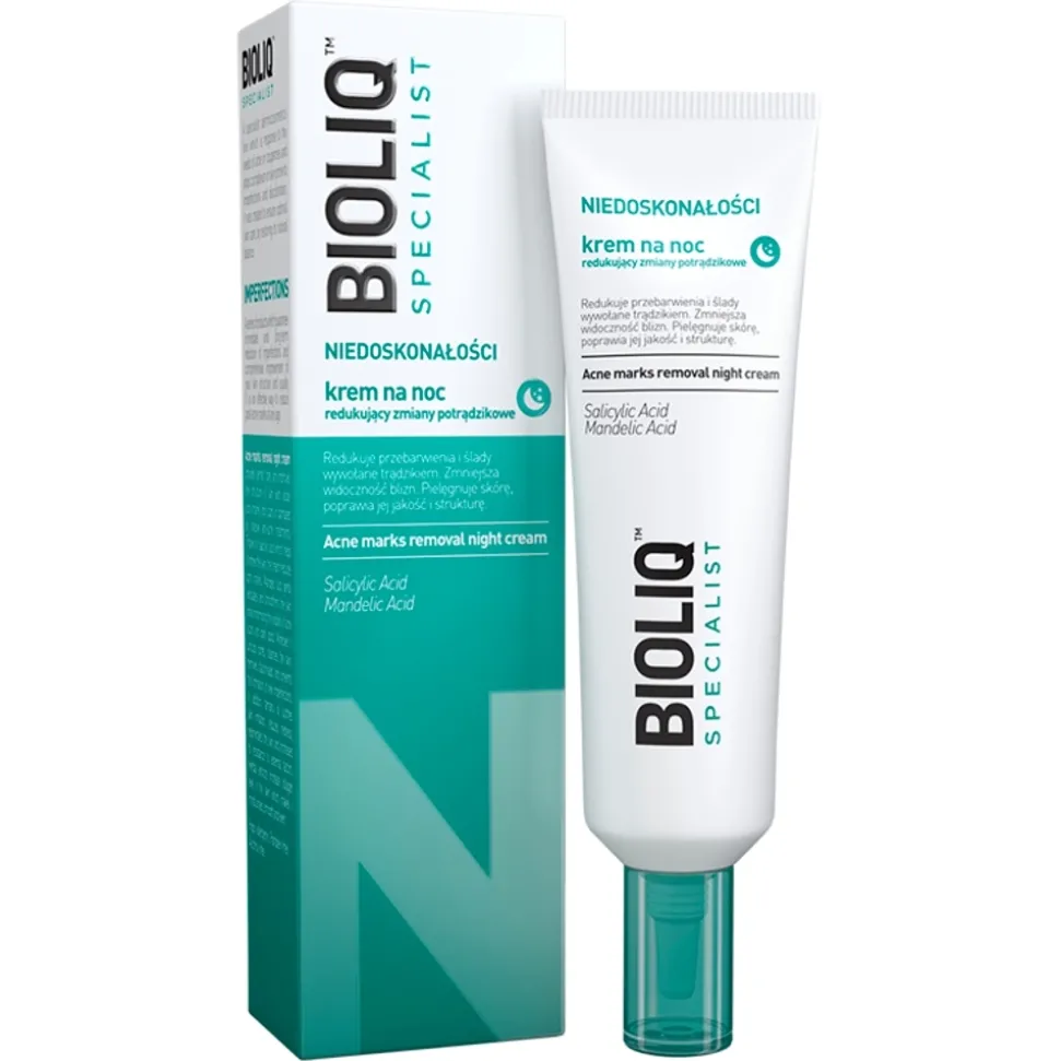 Krem na noc redukujący zmiany potrądzikowe stanowi doskonałą metodę pielęgnacji i poprawy struktury skóry z widocznymi zmianami i bliznami wywołanymi trądzikiem lub inwazyjnymi kuracjami przeciwtrądzikowymi. Dzięki obecności kwasu salicylowego, który przyczynia się do odnowy skóry, krem redukuje ślady potrądzikowe, a kwas migdałowy delikatnie złuszcza i wygładza skórę, tym samym zmniejszając widoczność potrądzikowych blizn i przebarwień. Ponadto odblokowuje pory i oczyszcza skórę z zaskórników, zapobiegając tworzeniu się nowych niedoskonałości. Dodatkowo olej Tamanu łagodzi podrażnienia, zmniejsza zaczerwienienia oraz regeneruje skórę i zwiększa jej odporność na czynniki zewnętrzne, a ekstrakty roślinne zwiększają ilość kolagenu w skórze, dzięki czemu staje się ona nawilżona, gładka i jednorodna.