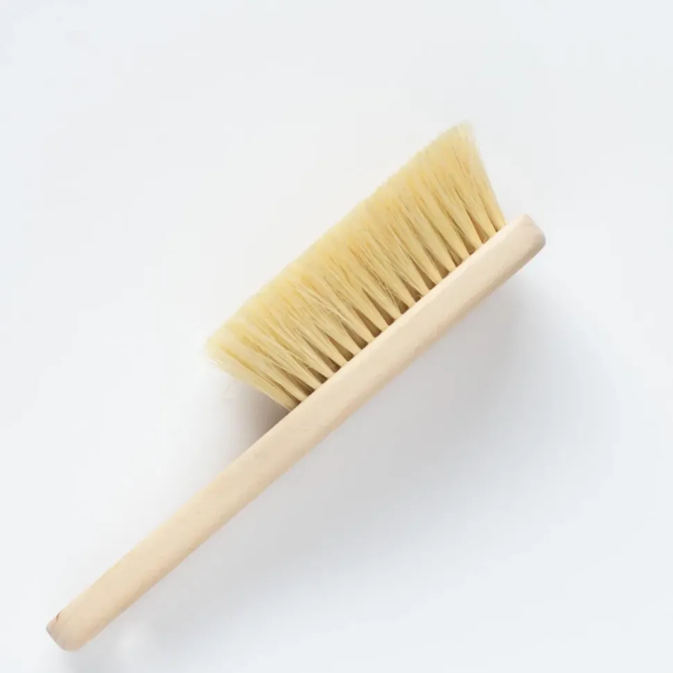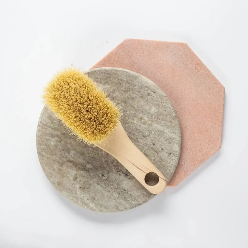 Szczotka do masażu ciała z rączką wykonana z włókna roślinnego – agawy (tampico) oraz z drewna bukowego.