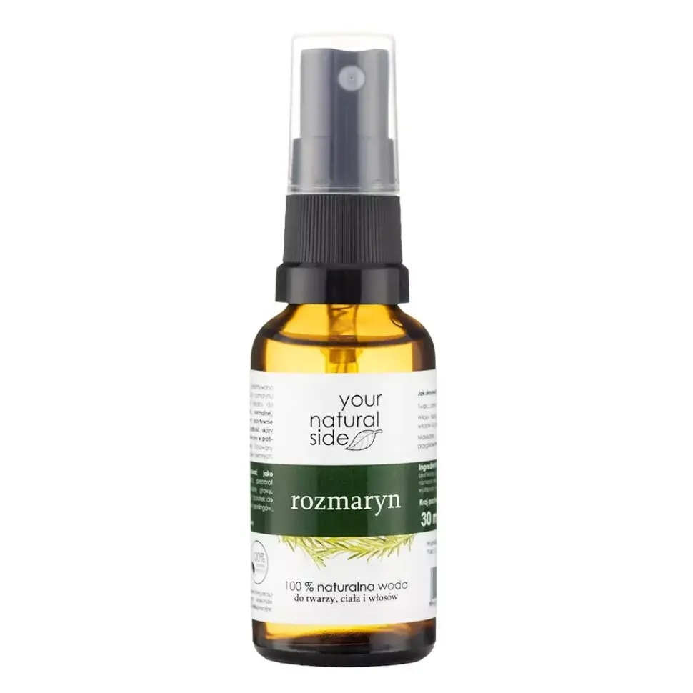 Woda rozmarynowa – działa przeciwzmarszczkowo, łagodząco i oczyszczająco. Polecana do pielęgnacji cery dojrzałej, normalnej, mieszanej i tłustej. Zmniejsza widoczność porów, oczyszcza i odświeża. Zapobiega płowieniu ciemnych włosów pod wpływem promieni słonecznych.