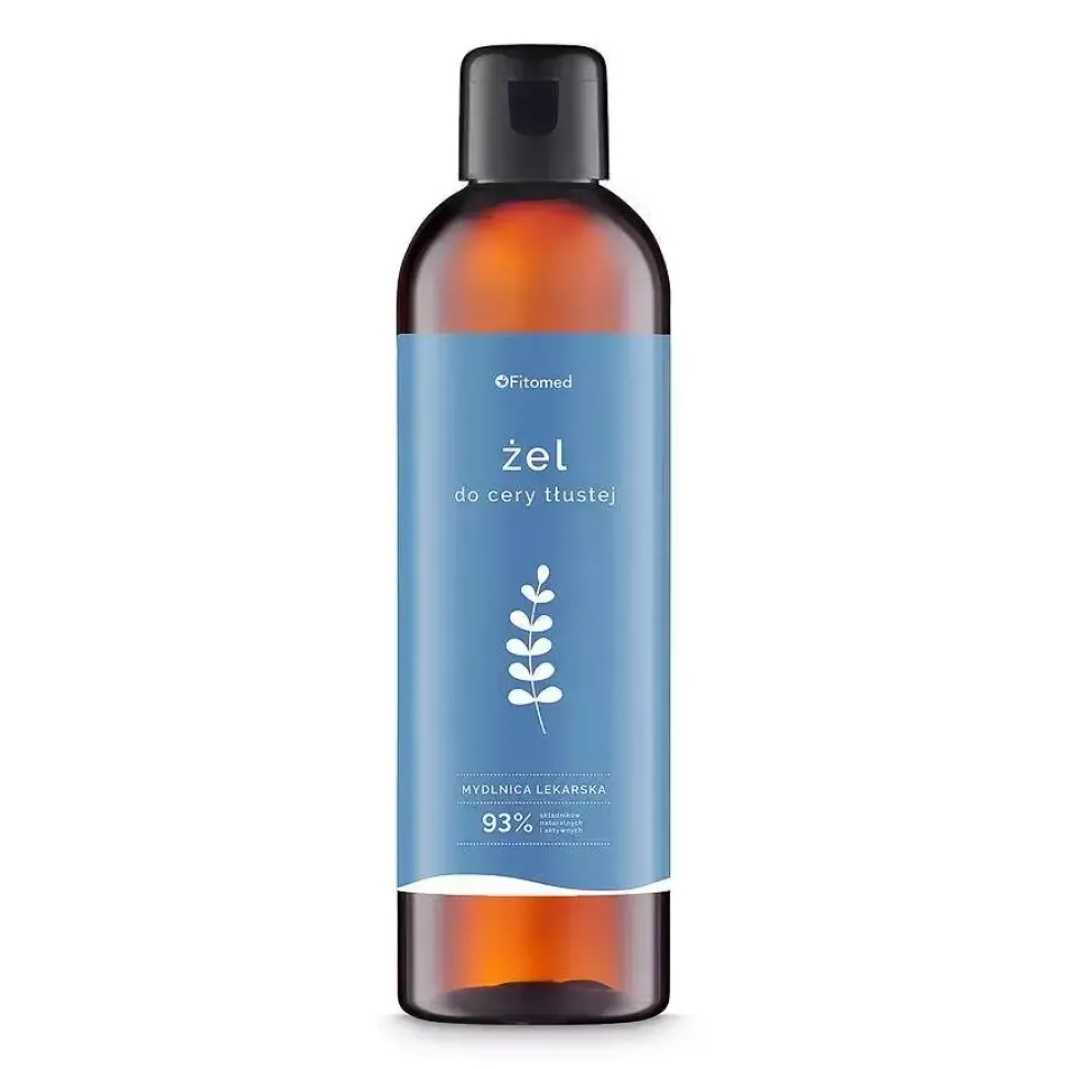 Żel do cery tłustej „Mydlnica lekarska” jest idealnym kosmetykiem dla osób z cerą tłustą, trądzikową i wrażliwą. Nie tylko posiada właściwości myjące i oczyszczające, ale również działa antybakteryjnie i zapobiega przetłuszczaniu się skóry. Wyciąg z korzenia mydlnicy lekarskiej jest bogaty w naturalne saponiny, co sprawia, że kosmetyk delikatnie pieni się pielęgnując Twoją skórę. Ekstrakt z liści szałwii jest silnym antyseptykiem, odblokowuje i delikatnie ściąga pory, zaś ekstrakt z nagietka łagodzi podrażnienia i regeneruje naskórek. Wybierając żel do cery tłustej Fitomed zapewniasz skuteczną pielęgnację i ukojenie swojej skórze.
