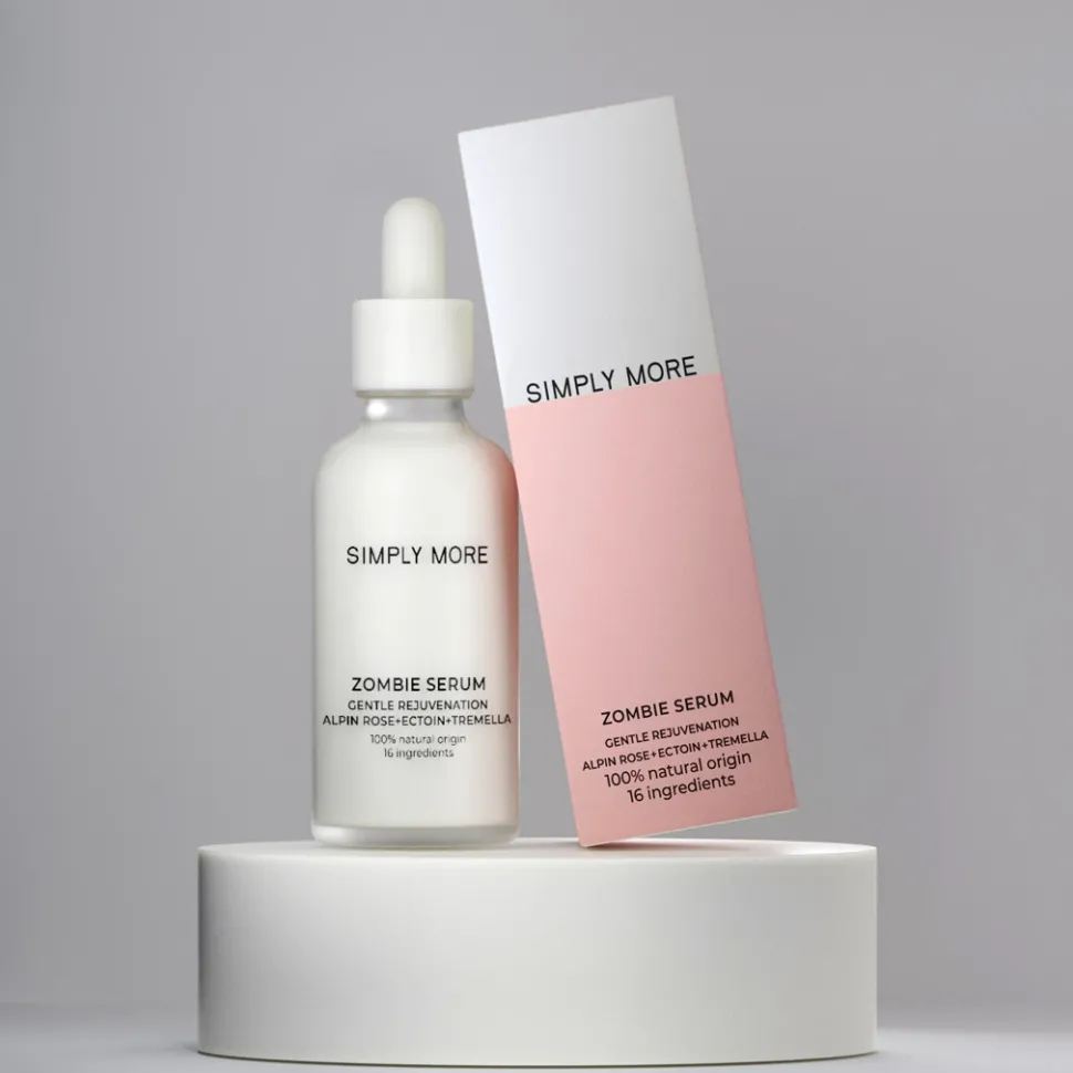 Simply More Zombie Serum to rewolucyjne serum do twarzy zawierające przełomowy składnik, który usuwa z naskórka starzejące się komórki, zwane komórkami „zombie”. Są to komórki, które nie są już zdolne do podziału i regeneracji i mogą powodować stany zapalne oraz przyspieszać proces starzenia skóry.